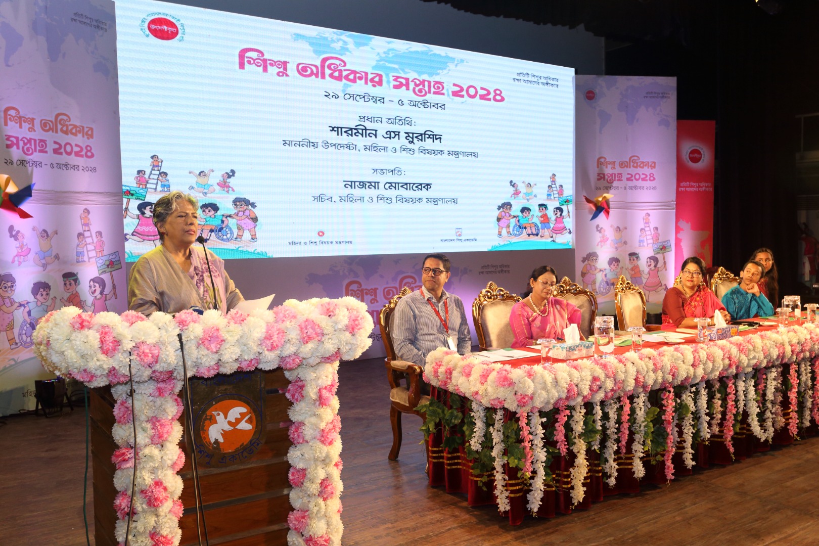 সভাপতির বক্তব্যে মহিলা ও শিশুবিষয়ক মন্ত্রণালয়ের সচিব নাজমা মোবারেক বলেন, এবারের শিশু অধিকার সপ্তাহ জুলাই বিপ্লবে নিহত শিশুদের উৎসর্গ করা হয়েছে।